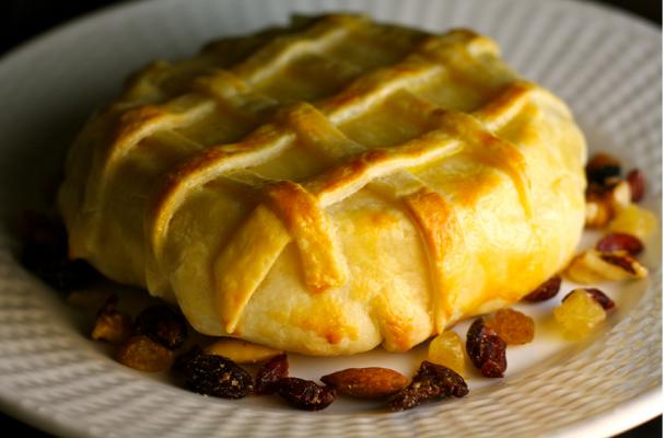 Slice brie cheese wheel in half, so that it’s in two rounds.