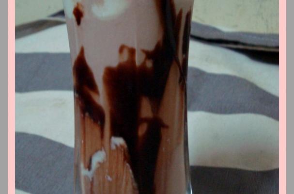Drizzle on the inside wall little chocolate sauce of the glass in which to be served.