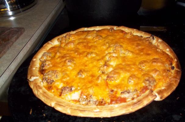 Spread with cooled crumbled pork, onion, garlic and seasonings.