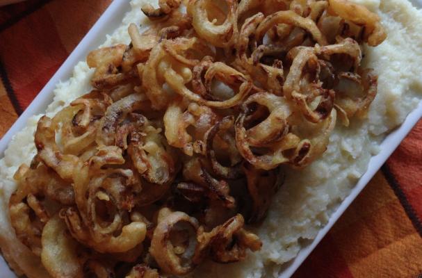 If you have never had a cauliflower mock mashed potato you need to give this one a try. It is so easy and when mashed like this, the flavor will surprise you, and who can resist a bunch of crispy fried onions and shallots on top?