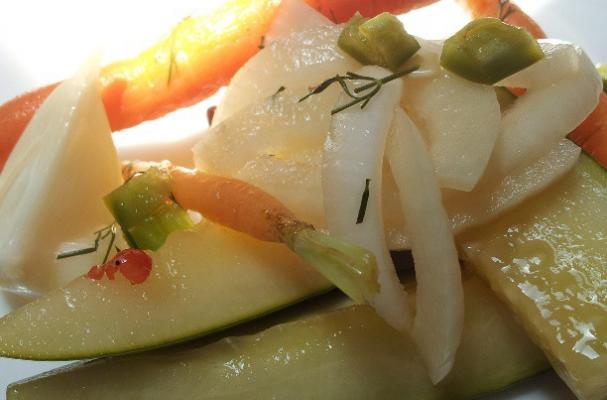 i made spicy pickles today and used cucumbers, carrots, onions, garlic and jalapenos in an apple cider based brine. later in summer i will make a similar recipe but adapt to the processed version. enjoy!
