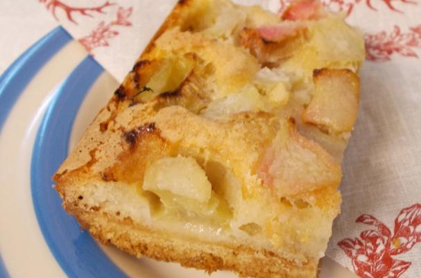 Crisp, buttery, biscuit base with soft, juicy rhubarb and an almost sponge layer on top. A fantastic way to use up some of your rhubarb mountain!
