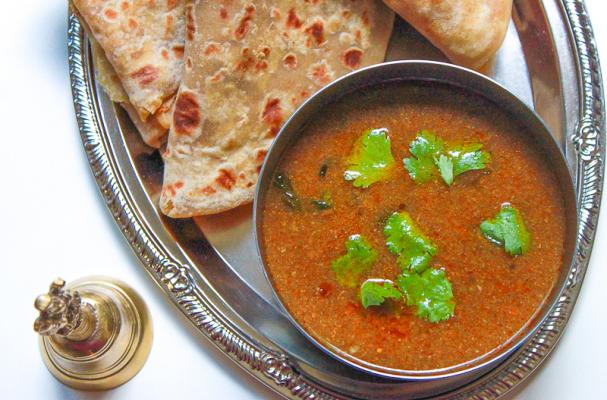 Katachi Amti is a spicy dal made from the leftover water from boiled chana dal used for making puran poli.