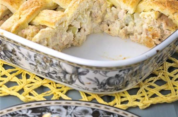 Place strips on top of casserole forming a lattice (or just criss cross the strips if that is easier)