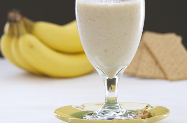 The flavors of banana cream pie in a healthy smoothie made with almond milk, greek yogurt and flax.
