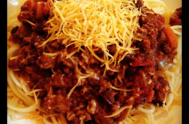 My favorite way to eat it... get ready for this... oh and don't dismiss me as a crazy loon for it.... but I serve my chili over SPAGHETTI with a heaping pile of shredded cheddar on top!!! I saw one of those traveling shows on Food Network and this place did just chili and served it over pasta, my thought immediately was YUM! Maybe you're thinking, Yup this chick is off her rocker, but seriously don't knock it till ya try it! Just think of it as a whole new version of bolognese!