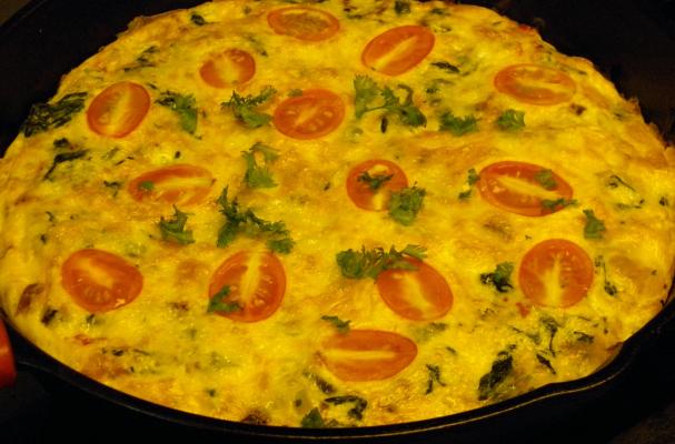 Eggs, especially those raised from pasture raised hens, are an important part of our diet. We eat them as part of various cooked dishes, baked dishes; and we eat them scrambled, poached, fried, as omelets and frittatas and of course as Huevos Rancheros. This dish is eggs in the Frittata format; cooked in a skillet with cheese and vegetables and finished in the oven. It is a delicious combination of baby spinach, tomatoes, peppers, eggs and cheese. It is flexible and can be eaten for breakfast, lunch or dinner with different side dishes. Here is a link to the video that shows how to prepare this frittata How To Cook a Tomato and Spinach Frittata on You Tube.