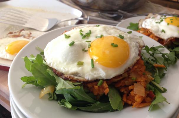 Vegetarian Sweet Potato Kimchi Hash Brunch