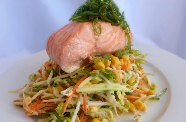 Asian Coleslaw with Baked Salmon