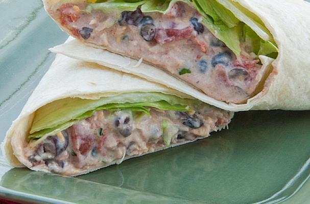 Divide mixture between the tortillas and top with lettuce. Roll up burrito style and serve.