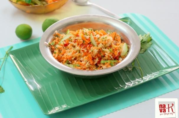 carrot and cucumber; tossed in lime juice, fresh grated coconut, chilies and fragrant coriander leaves