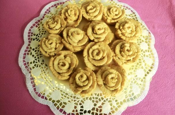 How prepare the cookies : Once removed the dough from the fridge, divide it into small blocks .Working hand in the small pieces of dough we create cookies in the shape of a rose and we place them on a baking sheet and bake for 25 minutes at a temperature of 190 degrees .At this point, the cookies are ready .