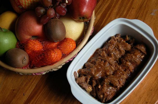 Pour-in half of the soy sauce-lemon juice marinade,salt and simmer until the beef is tender (about 2 hours using ordinary casserole or 30 minutes if a pressure cooker is used)