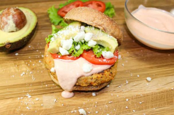 To view full recipe, visit: http://bitesofflavor.com/buffalo-chickpea-burger/