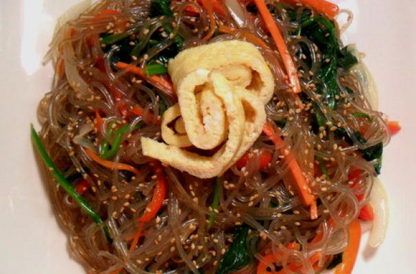 The last time I made japchae (sweet potato noodles w vegetables) it came out a little bland and the noodles clumped together from not adding sesame oil. But this time, I finally got those two out of the way and made a flavorful dish that the entire family enjoyed..........full story and recipe at http://www.oliviajasonkim.com