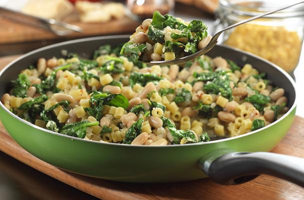 The beans are white, the greens are spinach...and the dish is delicious (and ready in 30 minutes)!