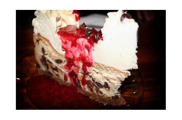 Beat chocolate, cream cheese and 1/4 cup fruit spread. Immediately stir in 2 1/2 cups whipped topping until smooth. Spread in 8 or 9 inch pie plate or springform pan. Freeze 3 to 4 hours. Remove from freezer; let stand 15 minutes. Briefly heat and stir remaining fruit spread and water until well blended. Garnish with fruit spread sauce, a dollop of whip cream and fresh raspberries. Store leftover cheesecake in freezer.