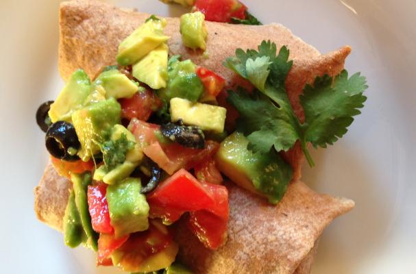 For the fresh cold salad to top the burritos with... 2 diced plum tomato, 1 diced avocado, 1 Tbsp sliced olives, fresh cilantro & fresh lime juice.