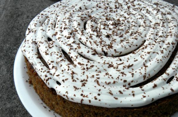 A strong coffee cake with hints of cinnamon, cardamom and a cream cheese frosting.
