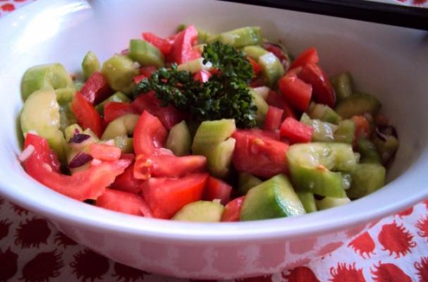 When my husband was travelling – his job took him all over the Asia Pacific – I would sometimes stop at the Xinjiang restaurant on my way home from work. My regular order was six mutton kebabs, this hot salad, and a serve of rice.