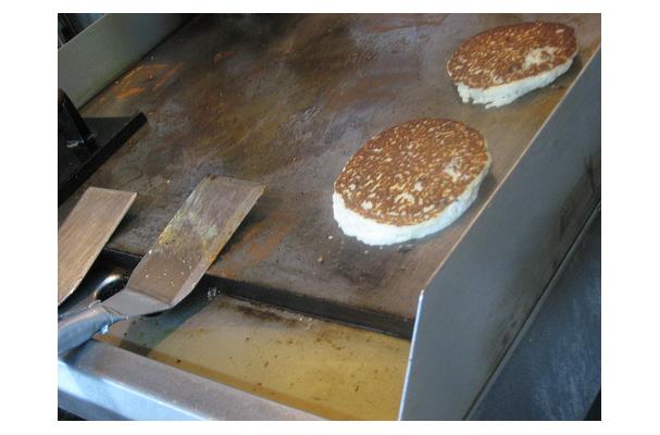boiling water to make a dough heavy enough to hold it's shape. Form into two thin oblong cakes and place in a heavy, hot, well greased pan.