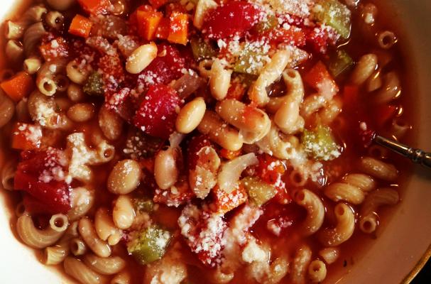 Pasta e Fagioli simply means pasta and beans. This soup is really easy to make and is packed with vitamins from all the veggies and it makes me think of Grandma. Soups are so great because you can make a huge batch and freeze half for another day and they are generally really inexpensive!
