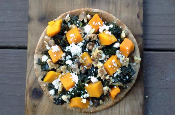 Pita Pizza with Butternut Squash, Kale, Feta & Walnuts