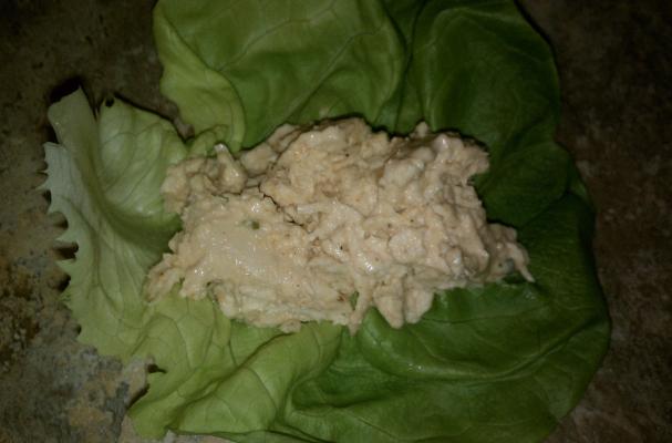 -Serve the chicken salad on the lettuce. Add any topping you like. I added tomatoes this time. Bacon is good, cheese, caramelized onions, red peppers or just plain chicken salad is very good.