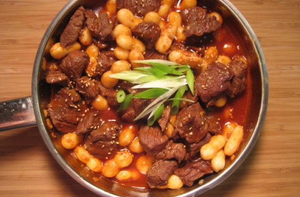 I made this quick but delicious version of tteokbokki (spicy rice cake) with one of my favorite ingredients--steak. Instead of the usual fish cakes (odaeng), I substituted it with big chunks of steak and a different shaped tteok called joraengee tteok......full story and recipe at http://www.oliviajasonkim.com