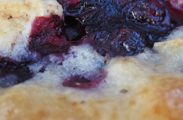 Fresh blueberry cobbler with a cakey, buttery crust.