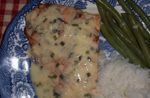 A simple recipe that has only one true rule to be sucessful, and that is don't rush the cooking. You can use either a salmon steak or a filet, the filet sometimes is a little hard to turn but if your careful will work just fine.