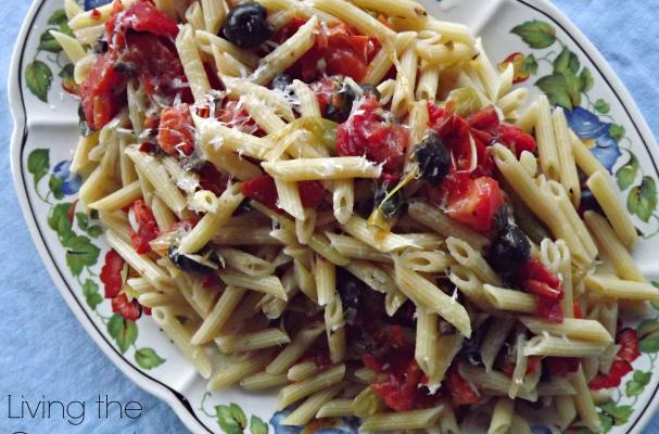 Heat a large frying pan with 2 tablespoons of olive oil. Add the scallions, garlic and tomatoes. Sauté on low until the scallions are tender. Add the olives, basil and seasonings. Gently simmer while preparing the macaroni.