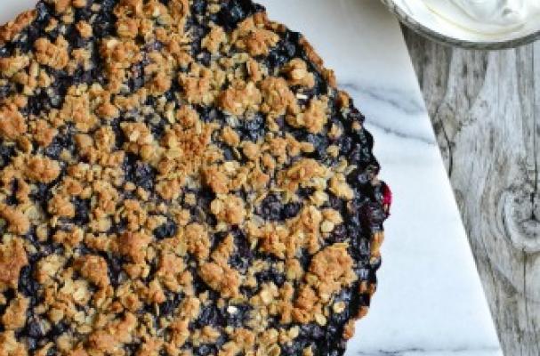 The dough for this tart does double-duty as both a cookie crust and crumb topping. Add a fresh blueberry filling and cream cheese whipped cream and you've got a perfect summer dessert.