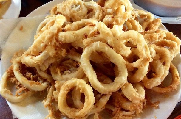 Place in the sliced calamari and shake well to coat . Remove the calamari onto a plate, shaking of any excess flour.