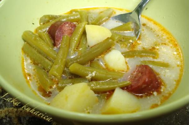 Green string beans with potatoes and smoked sausage