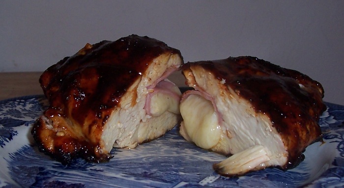 Long ago I found one little trick to making cordon bleu that's quite simple. Instead of wrapping the ham and cheese in a butterflied and pounded chicken breast, cut a pocket into the breast and using a piece of very thinly sliced ham that will be large enough to completely envelope the cheese. Wrap it around the cheese and then fold the open ends in so the cheese cannot seep out and insert into the pocket.