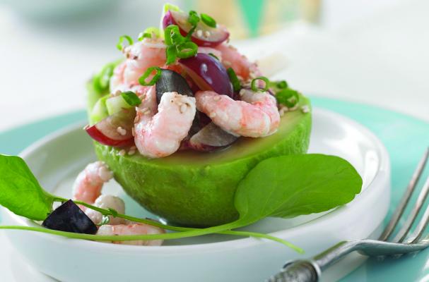 Coastal Salad with Grapes and Shrimp is fit for a party on the patio with whatever is on the barbecue or by itself for a filling lunch. The salad can also be presented in a number of ways: the salad mixture can be mounded onto butter lettuce leaves, mixed with baby greens, or for an especially rich treat, inside an avocado half.