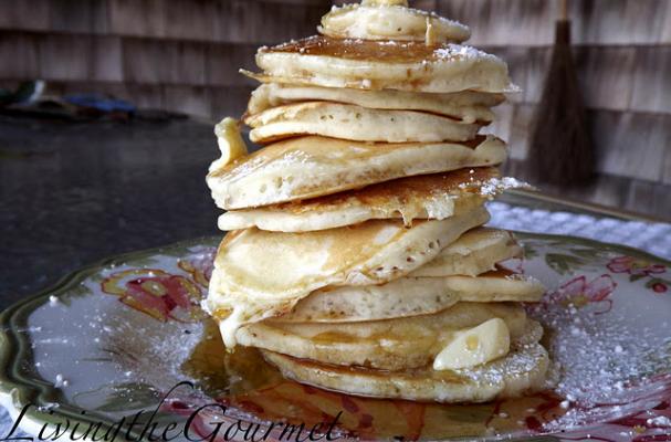 These pancakes are light and oh so fluffy! They make a delicious breakfast, lunch or dinner!