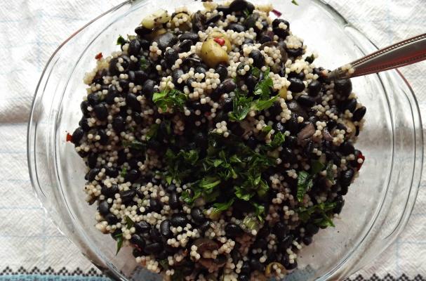 Combine all of the ingredients for the salad with the beans in a large bowl.
