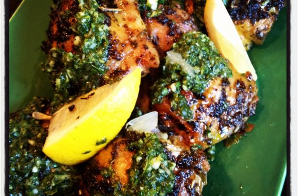 Place the chicken thighs on a baking sheet and cook for 1 1/2 hours. The skin should be beautifully browned and the chicken incredibly juicy! Top the chicken with the remaining garlic and herb mixture and an extra squeeze of lemon.