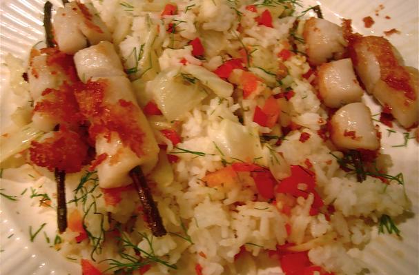 Scallops and Roasted Fennel Rice With Rosemary Anchovy Sauce