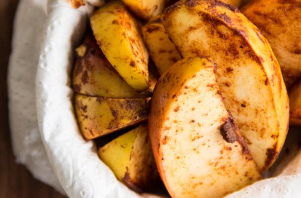 Baked Cinnamon Apple Wedges - 4 ingredients, 2 mins prep and 10 mins in the oven. Simple & delicious.