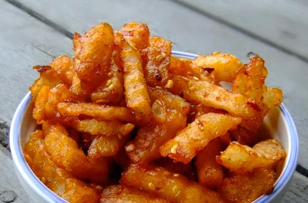 Find the preparation steps here : http://divinespicebox.com/2014/03/22/hot-n-honey-potato-sticks/