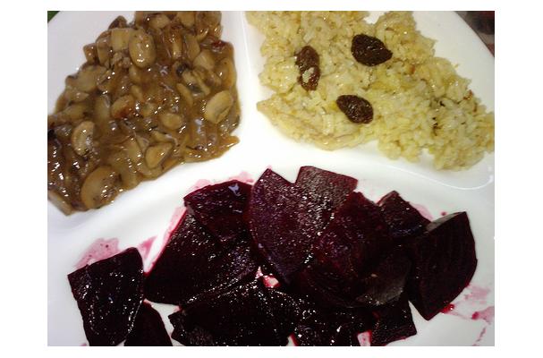 Saute rice and onions in melted butter on medium high heat, until the onions are translucent and rice is slightly browned. Add the chicken broth to rice and onions, cook until rice is tender and fluffy; add raisins to rice let stand for 5 minutes on lowest heat, add cinnamon and mix.