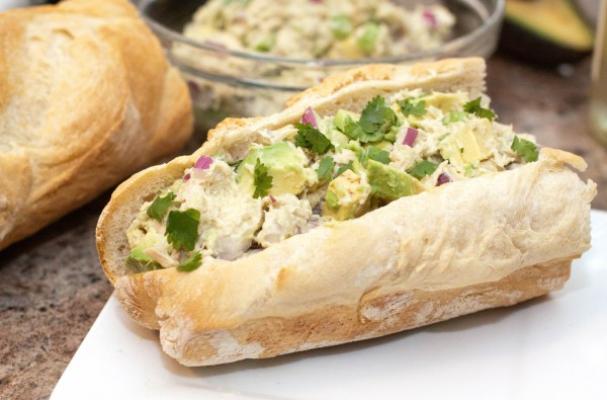 Kick up your Tuna Salad with some avocado and homemade mayonnaise. Put it on a homemade baguette for a hearty healthy Avocado Tuna Salad Sub