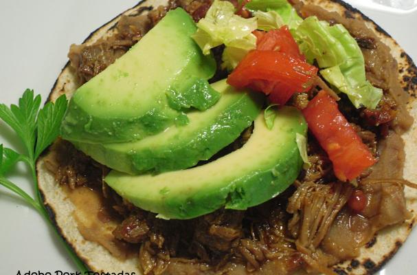 Spread refried beans over tostada shells. Top evenly with pork mixture. Divide greens, tomato, avocado and cheese evenly among tostadas. Top each with sour cream.