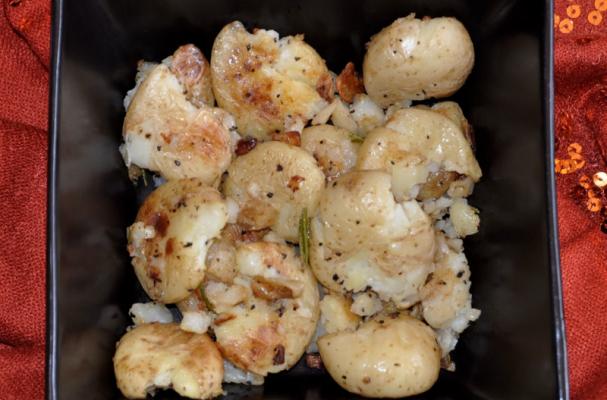 Garlic Roasted Smashed Potatoes With Black Pepper