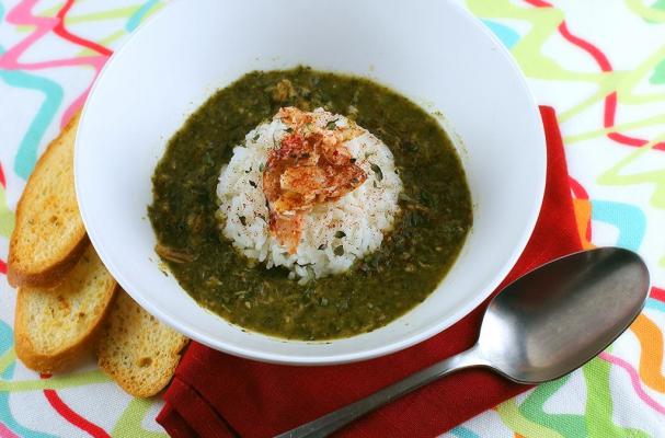Delicate and spicy Callaloo Soup is rich with the flavor of crab and rice!
