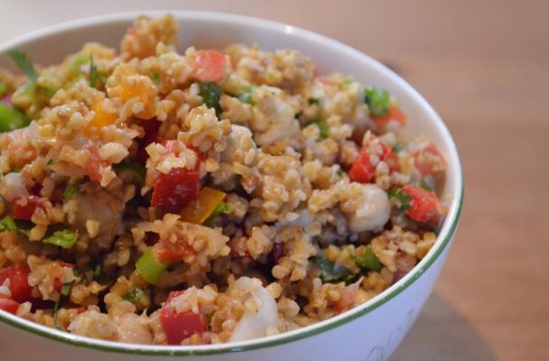 Bulgur Wheat Salad with Chickpeas, Bell Peppers & Tomatoes