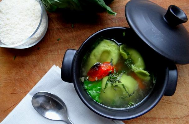 Once the stock boils, add the tortellini, season with salt and pepper and boil as directed on the package.